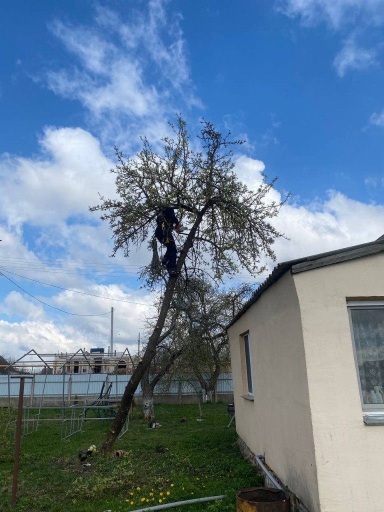 Спил и валка в Минске и Минской области: аварийные и сухостойные деревья, высотные работы со страховкой, секционная распиловка в стеснённых дворах, корчевка пней и вывоз веток.